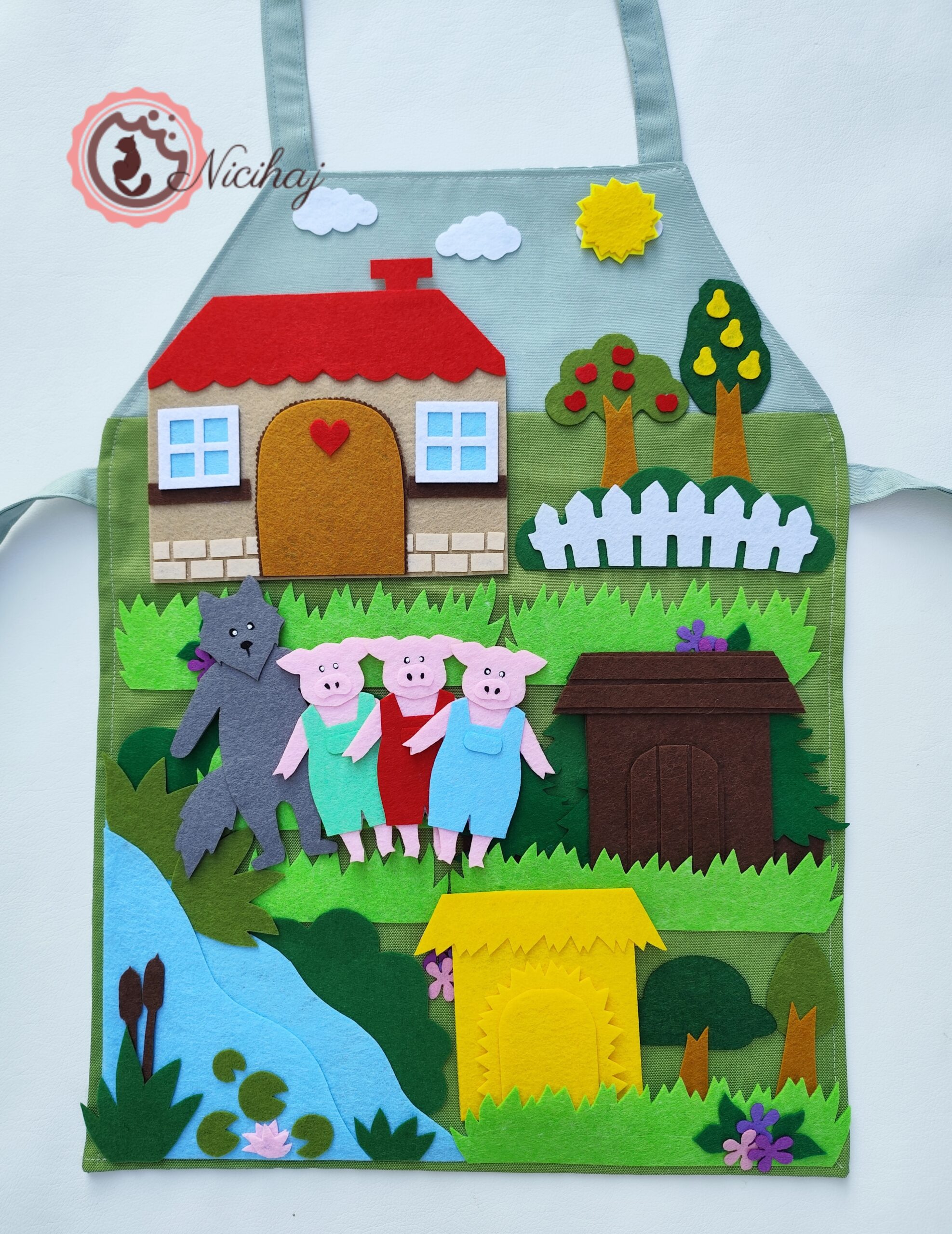 Textilből és ficből készűlt mesekötény, amely nem csupán egy hasznos eszköz a meséléshez, hanem a gyermekek fantáziavilágának fejlődédéhez is nagyban hozzájárul. Ez a kötény a mese világát és szereplőit is megeleveníti. Hasznosnak bizonyul a szókincs és memóriafejlesztésnél, az erkölcsi énkép, valamint az esztétikai érzék alakításánál is.